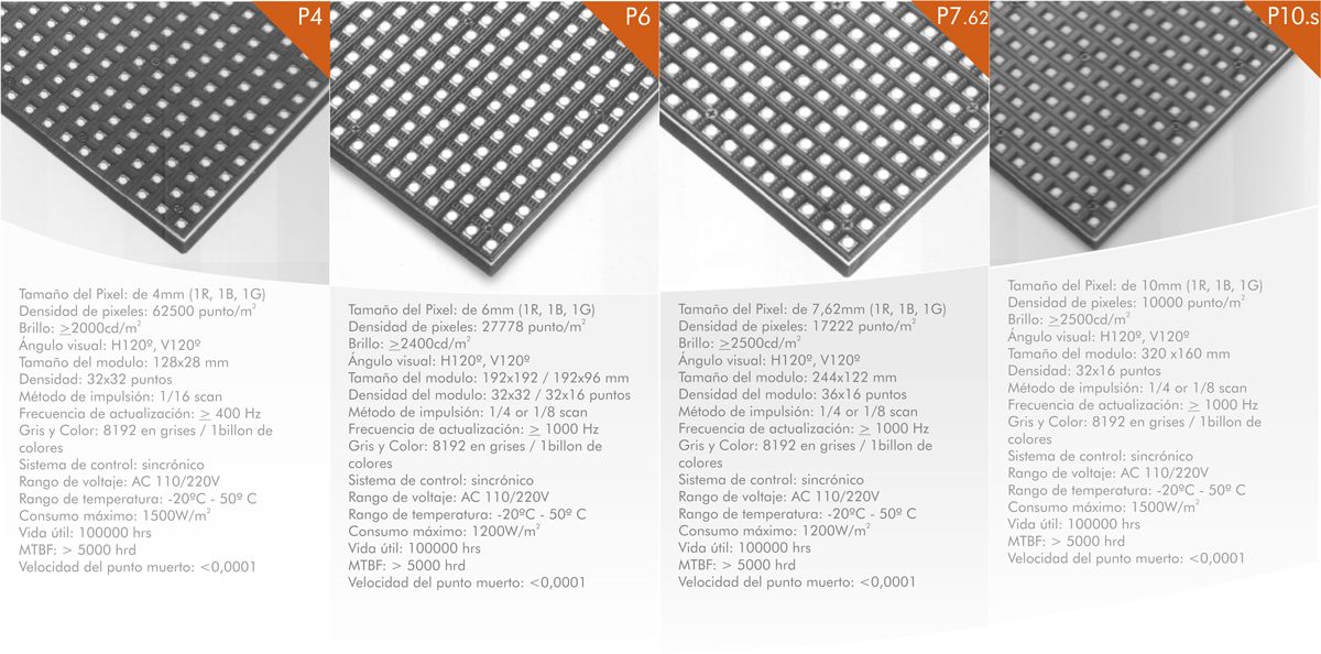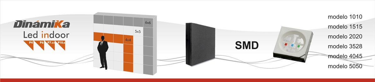 Among the models we find series as: Diode led 1010, 1515, 2020, 3528, 4045, 5050 among others. These models evolve every year to achieve a lower consumption and more brightness, among its variations, we find SMD led models that are used for exterior screens, their development is good and with great prospects for the exterior screens..